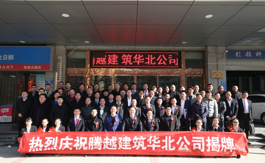 2018年2月3日,期盼已久的华北公司揭牌仪式,在华北公司总经理张振广总等领导班子成员、机关管理人员、优秀劳务分包单位的见证下隆重举行,标志着广东腾越华北公司全面布局华北开启全新篇章。