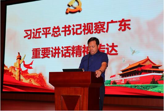 广东腾越党总支副书记、常务副总经理邓培初传达《习近平总书记视察广东重要讲话精神内容》