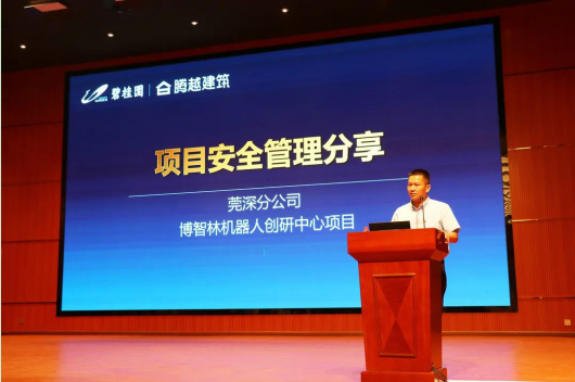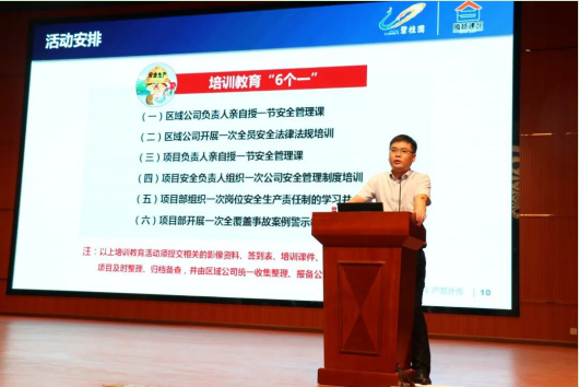 会议伊始,公司总经理助理兼资深安全总监吕伟军对公司安全生产月活动方案进行了详细地介绍,进一步明确了公司安全生产月活动开展的目的、意义及相关要求。随后,莞深公司及智林机器人创研中心项目分别从区域公司和项目管理层面,就安全管控亮点及要点进行了分享,充分展现了腾越建筑安全“三级管控”成效及成果。
