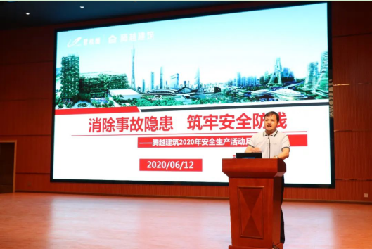 公司执行总经理邓培初也于会上详细宣贯了全国安全生产月活动要求、解读了《住房和城乡建设部工程质量安全监管司2020年工作要点》等相关文件精神,认真传达了集团安全生产委员会会议精神,并从“规范管控行为、杜绝违章作业、消除安全隐患、加强培训教育”四个方面,全面阐述了腾越建筑“四位一体”安全管理体系建设。