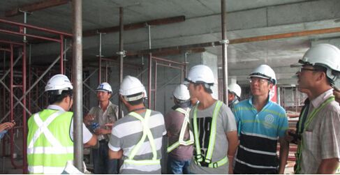 1月16日上午,在碧桂园金海湾项目部的组织下,碧桂园金海湾地块所有施工总承包方沈阳腾越、中建二局、湖南建工、中冶十七局、active金海湾plot1地块等5个施工总包的项目负责人、项目总工及其他管理人员一行50多人至腾越建筑公司马来西亚分公司承建的金海湾plot1ABC项目工地进行参观学习,金海湾项目总工关中科接待观摩小组并现场解说。