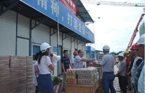 下午15点40分,送清凉活动在新翼广场项目有条不紊的组织下正式拉开序幕。香甜可口的西瓜、功效齐全的防暑药品、清热解毒的凉茶堆满整个派送台。工友们整齐排列队伍,一一从派送员手中接过慰问品,脸上堆满的笑容。“感谢北滘镇总工会、公司工会此次送清凉活动。我们感觉很窝心也很开心”领到慰问品的工友们开心的告诉记者。