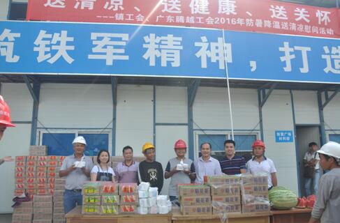 送清凉活动是公司及工会组织贯彻落实以人为本,关心员工生活,促进安全生产的重要举措,目的是为了确保广大施工人员的身体健康,安全生产。一直以来,广东腾越工会紧跟北滘镇总工会、集团工会发展步伐,积极参与各项公益活动,从2016年1月“爱心大巴送农民工回家”到5月“精准扶贫,助学筑梦”,再到今天的“为夏日消暑,送清凉暖心”,每一项公益活动背后都饱含腾越爱心与用心。