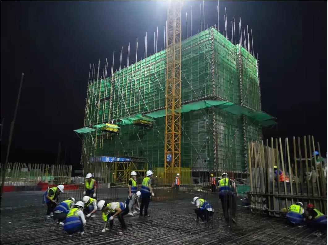 晚上10点,施工现场腾越反光衣照亮现场各个角落