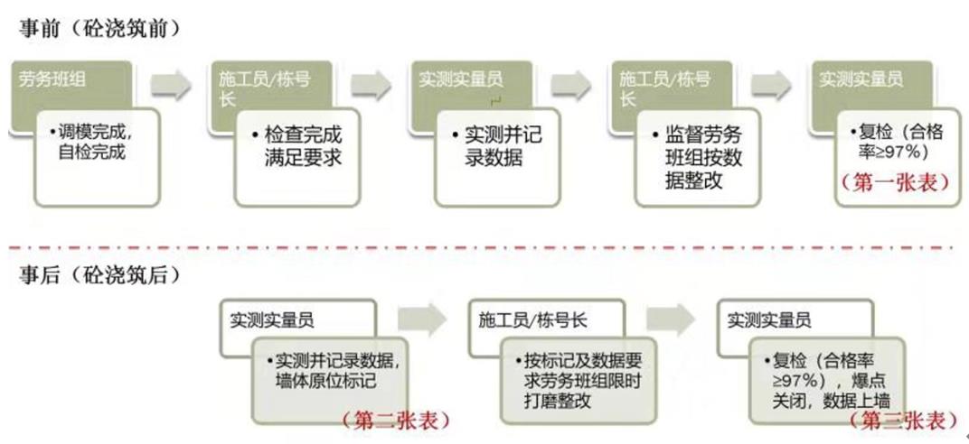 从前期准备阶段的厂家考察入库、库内厂家考核、深化交底、图底确认,到过程管控的工厂原材验收、工厂预拼装验收、铝模编码打包、首拼验收、首层后评估、三阶段检查验收,莞深公司层层管控,确保结构可以一次成型成优,大大提升现场施工质量。