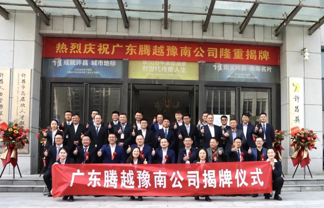 2021年10月25日,腾越建筑豫南公司隆重举行揭牌仪式。腾越建筑副总经理田岳龙、马守琛,腾越建筑副总经理兼河南公司总经理张振广,豫南公司常务副总经理侯明艺等领导及豫南公司机关部门负责人出席仪式。
