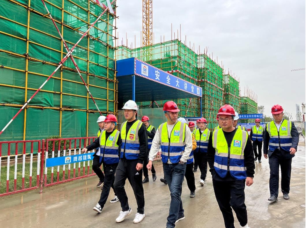 河南公司碧桂园天玺湾居项目位于郑州市金水区博学路与杨金路交叉口东南角,总建筑面积约14.98万㎡,装配率达51%。作为腾越建筑河南公司第一个装配式项目,自开工以来,项目团队就严格要求,按照集团和公司安全管理制度要求,高度重视现场施工标准化管理水平,以创建标杆工地为目标,严抓安全生产,在日常项目建设中,项目团队从前期策划、准备实施、过程管控等方面层层入手,并在安全管理过程中不断总结、改进,始终贯彻落实“安全第一,预防为主,综合治理”的方针,将安全文明施工摆在工作前列。