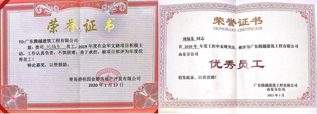 刘福东说,腾越建筑给予了他很多机会和空间,不论自己是技术员还是技术经理,他都非常珍惜。百姓因安居乐业而充满希望,社会因我们的存在而变得更加美好。在今后的工作中,他将继续不忘初心,砥砺前行,为建设美好家园不懈奋斗!