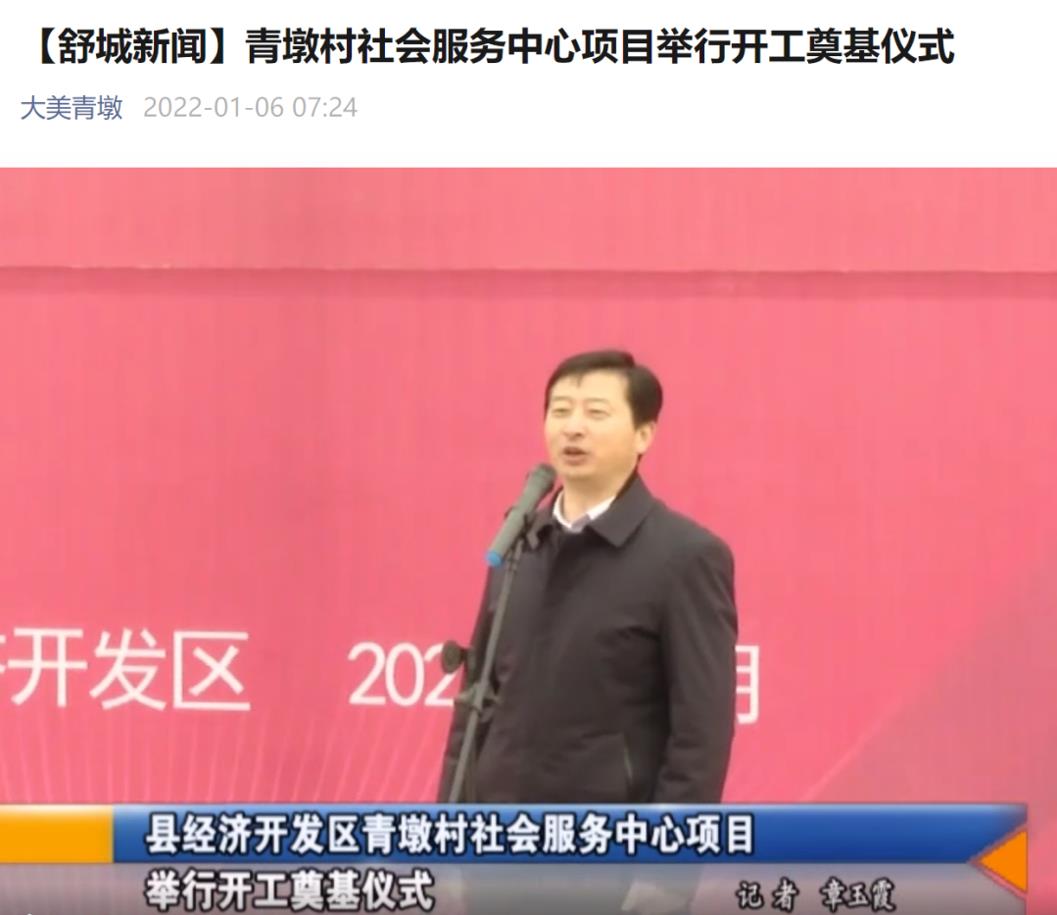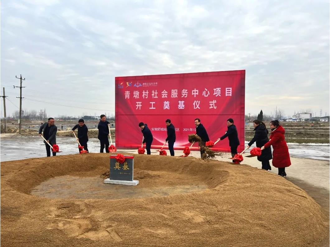 据悉,青墩村早在2014年就被确定为舒城县80个建档立卡贫困村之一,此次青墩村扶贫项目主要为修建青墩村社会服务中心。项目奠基仪式上,舒城县县委副书记兼县长王万喜等政府领导及青墩村村代表、碧桂园安徽区域总裁孙财皆出席了仪式。