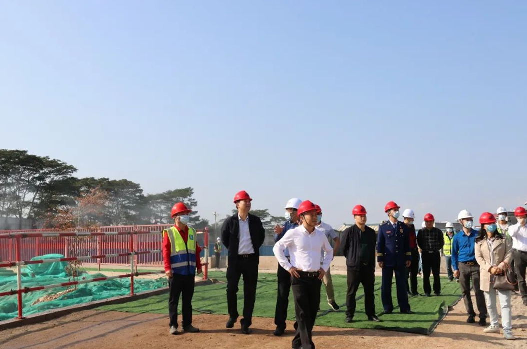 魏主任及杨局长就项目现场工人安全入场、安全交底,现场控尘、裸土覆盖、喷淋系统落实,工人入场健康码和行程码监督情况给予高度认可,同时指出安全生产、扬尘管理、疫情防控三方面要高度重视、不能松懈,项目要紧跟国家发展战略,严格落实政府相关制度,及时反馈建设情况,做让市民放心的好项目。